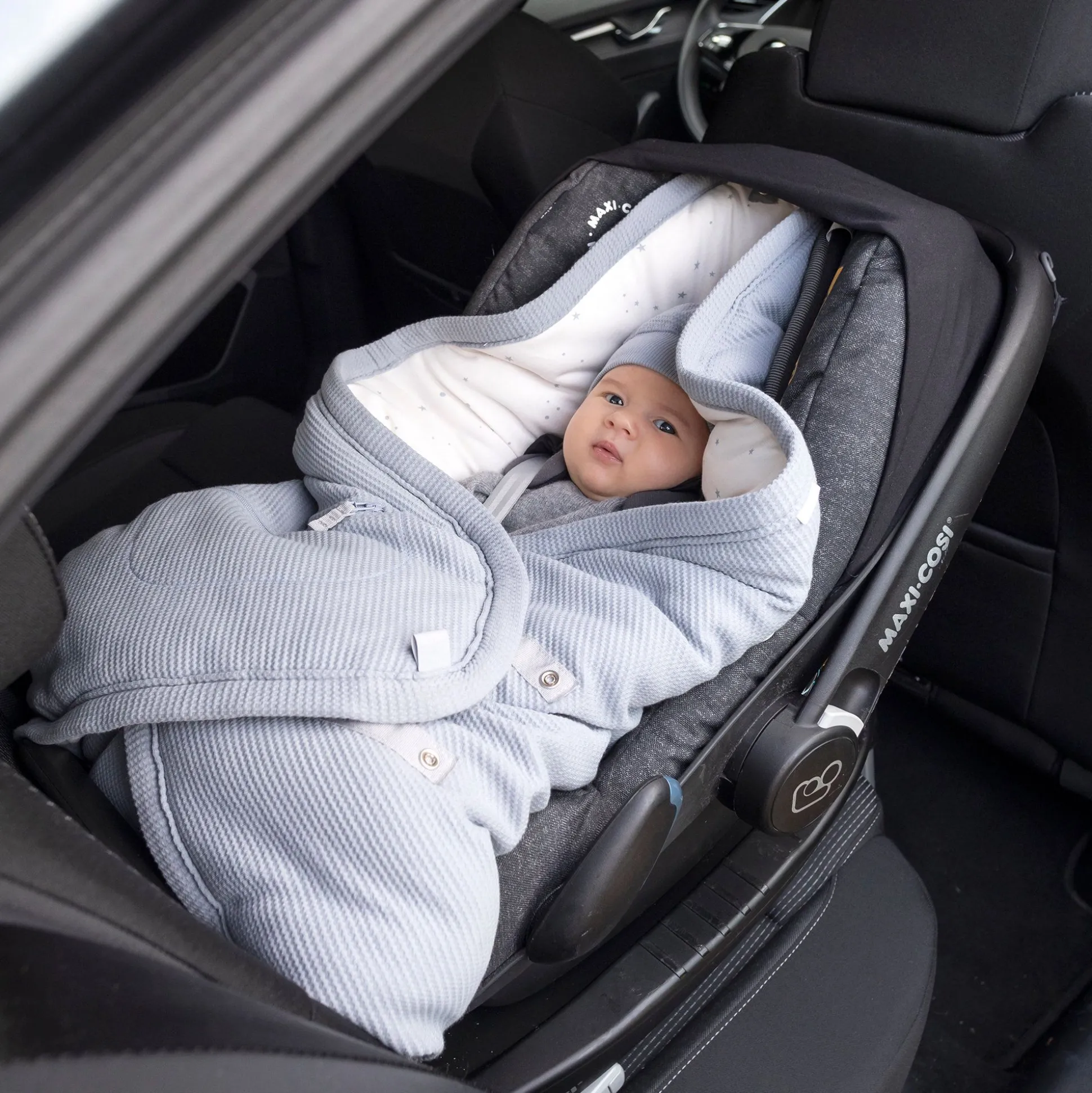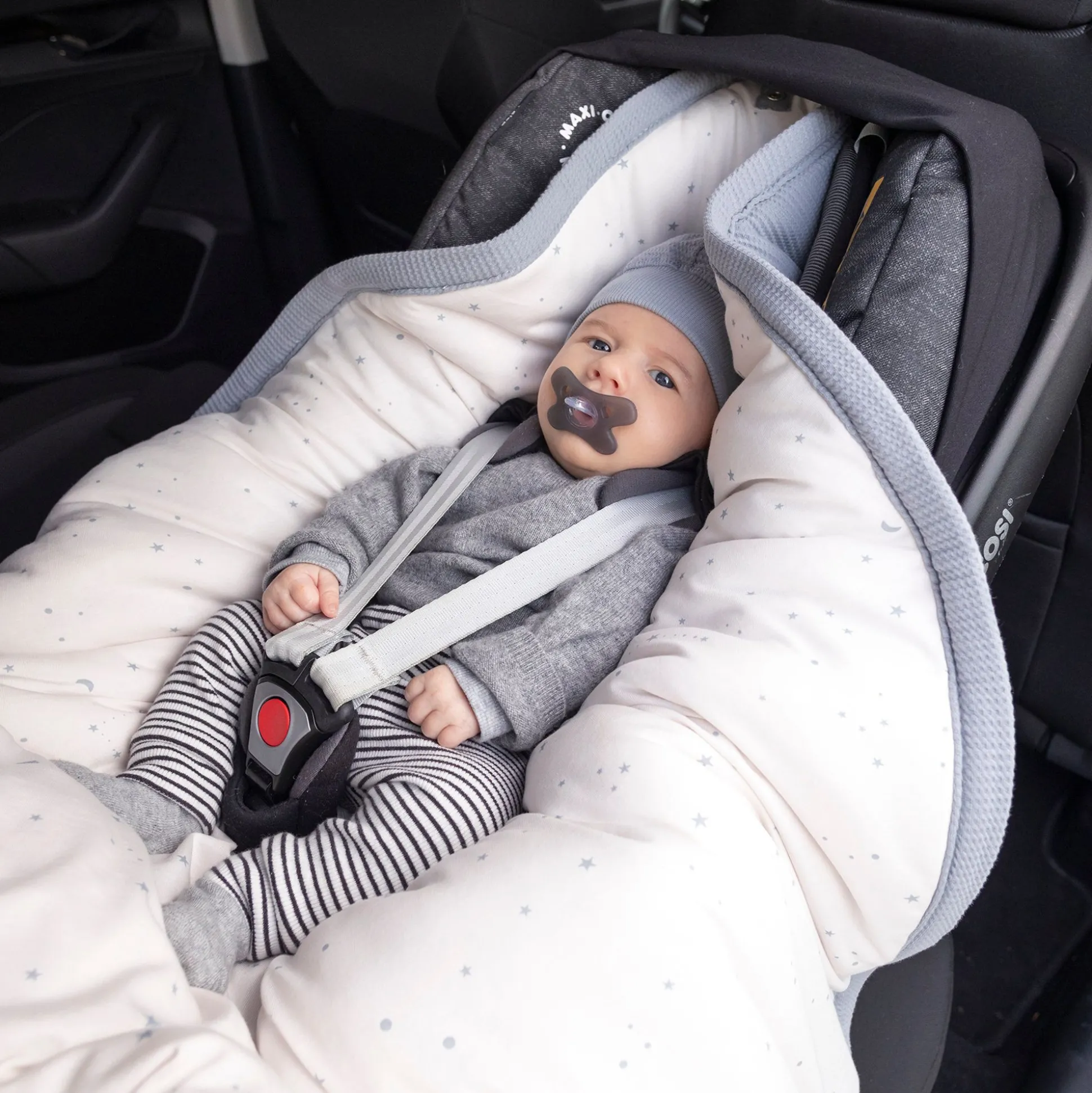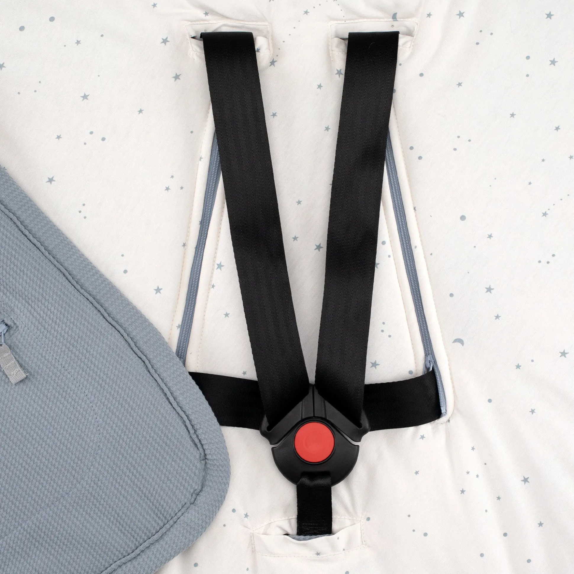 Universeel Model, De Veiligheidsdeken Past Op Alle Babyuitrusting: Draagwieg, Autostoel, Kinderwagen Met Een Bevestigingssysteem Voor 3- Of 5-Puntsgordels.