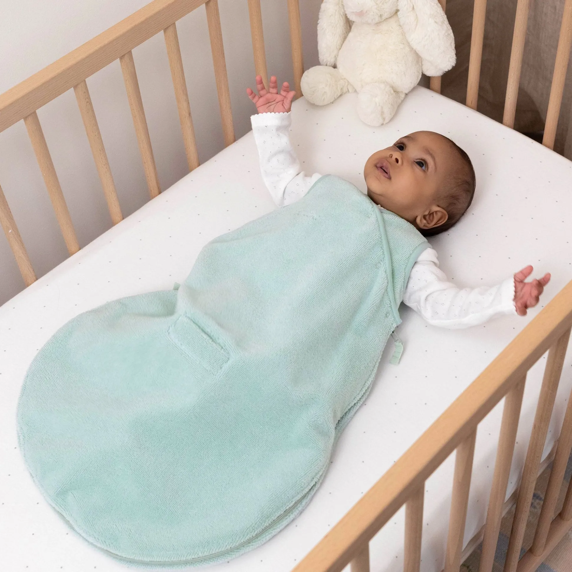 Het Goed Omhullende Hoeslaken Van Rekbare Stof Past Perfect Op De Matras Van Het Babybedje.