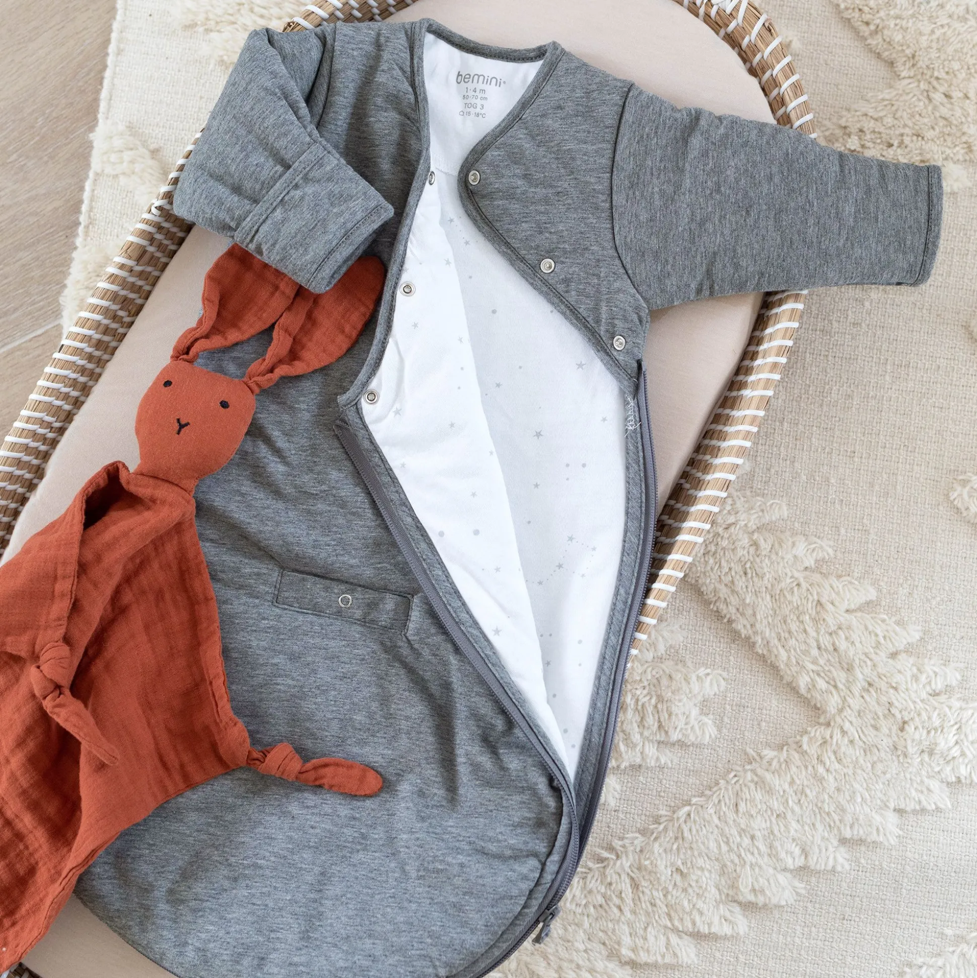 De Gewatteerde Jersey Is Zijdezacht En Behaaglijk Warm Zodat De Baby Altijd Lekker Ingeduffeld Is. De Stof Verzekert Een Ideaal Thermisch Comfort Bij Een Kamertemperatuur Tussen 15°C En 18°C.