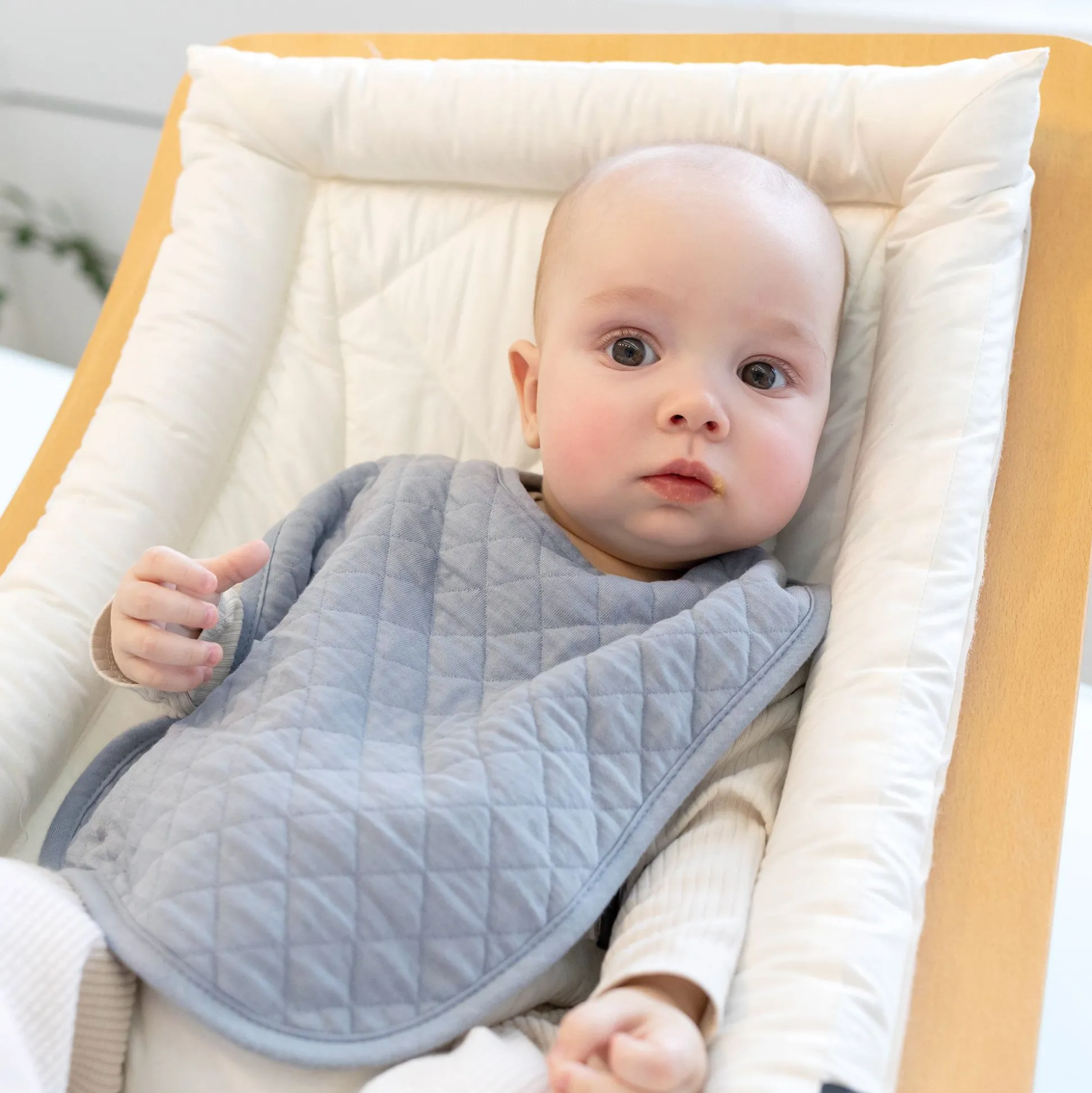 De Ondoorlatende Coating Beschermt Het Nekje En De Kleertjes Van De Baby.