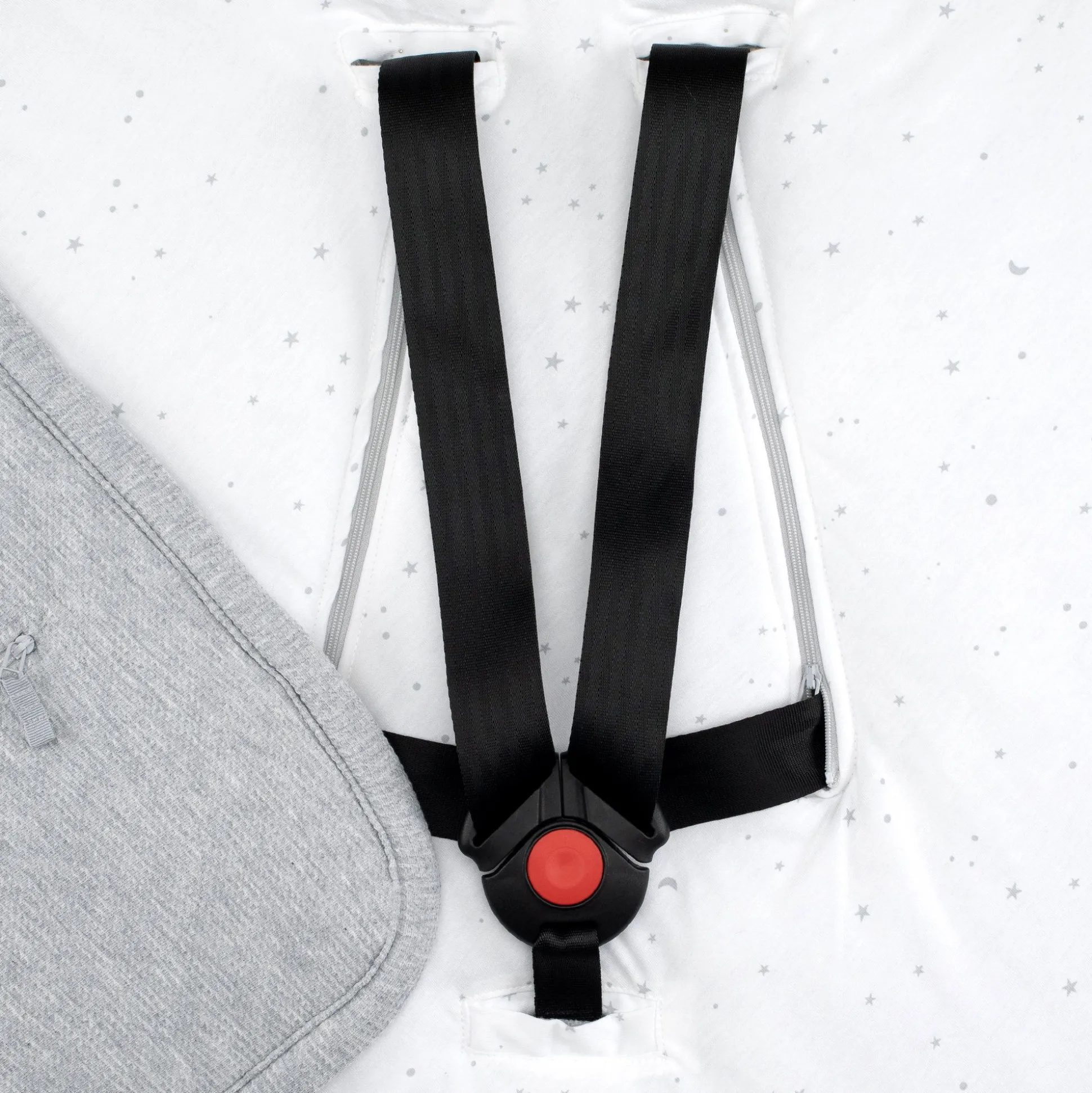 Universeel Model, De Veiligheidsdeken Past Op Alle Babyuitrusting: Draagwieg, Autostoel, Kinderwagen Met Een Bevestigingssysteem Voor 3- Of 5-Puntsgordels.