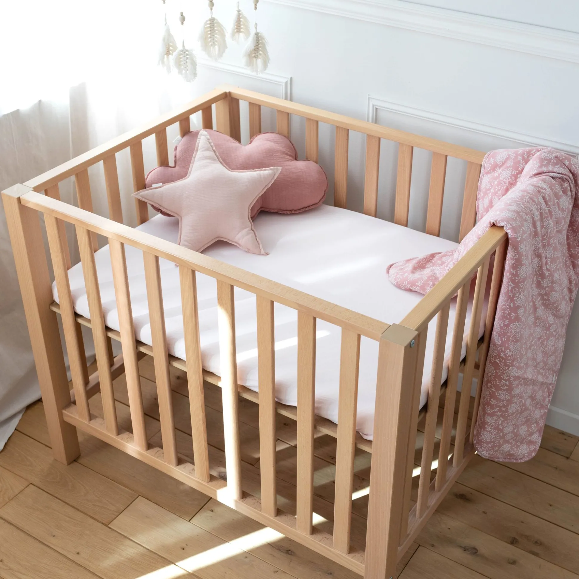 Het Goed Omhullende Hoeslaken Van Rekbare Stof Past Perfect Op De Matras Van De Babybox Van 75 Tot 95 Cm.